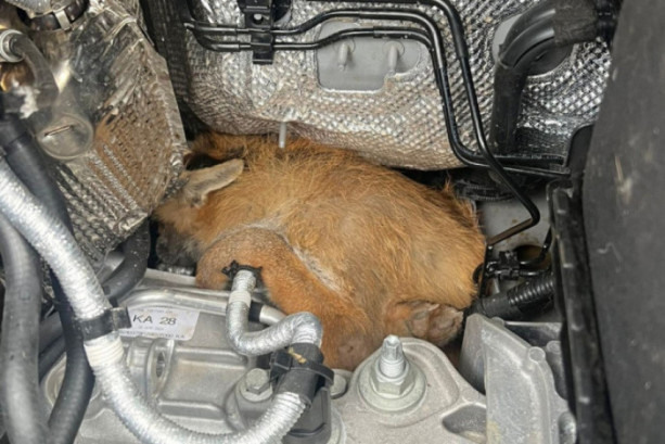 Една млада лисица преживеала неверојатна авантура откако завршила заглавена во моторниот простор на возило за достава на Амазон.