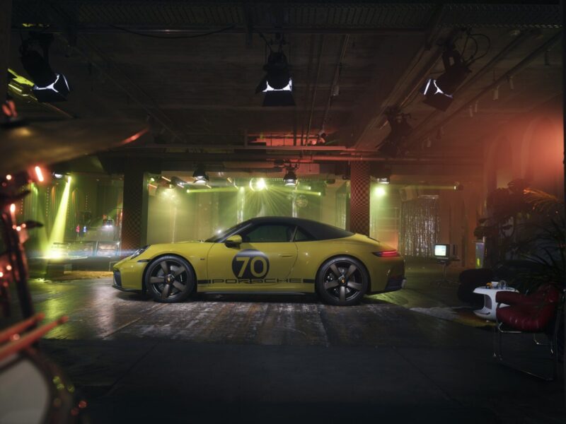 Ексклузивна Olive Neo боја, историски инспирирана декоративна графика и легендарниот Pasha дизајн во внатрешноста: Porsche го претставува 911 Spirit 70, кабриолет ограничен на 1.500 единици кој ја отелотворува суштината на 70-тите и раните 80-ти години. Создаден како дел од стратегијата на Heritage Design, овој колекционерски модел е третиот модел на 911 со кој Porsche оживеа една ера со помош на иконографски дизајнерски елементи од претходните модели. Техничката основа за 911 Spirit 70 е актуелниот 911 Carrera GTS Cabriolet со ефикасен хибрид. Во комбинација со високонапонскиот систем, eTurbo и електричниот мотор во новиот PDK, новоразвиениот 3.6 литарски боксер мотор постигнува системска моќ од 398 kW (541 коњски сили) и 610 Nm.