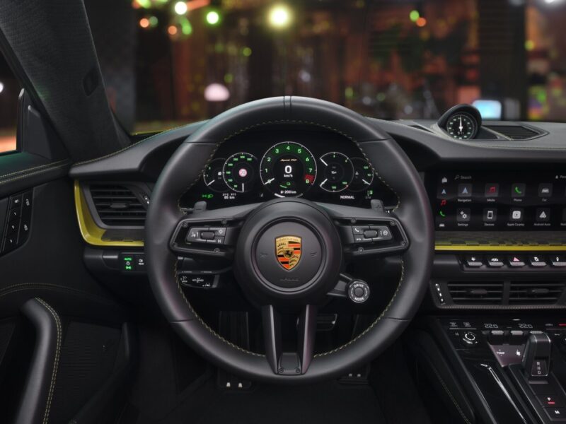 Инструменталната табла комбинира историски дизајн со најсовремена технологија. Екранот со висока резолуција од 12,65 инчи има бели покажувачи и скални линии во аналоген формат. Зелените цифри потсетуваат на легендарниот Porsche 356 и буквите на моделот се елегантно интегрирани во целосно дигиталниот бројач на вртежи. Белите стрелки и зелените броеви исто така ја карактеризираат специјалната верзија на штоперицата Sport Chrono.