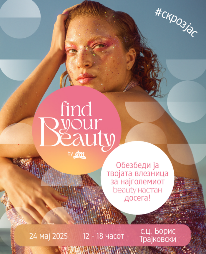 Што значи за тебе да ја пронајдеш својата убавина? Одговорот те чека на настанот Find Your Beauty што го организира dm на 24 мај 2025 година во спортскиот центар „Борис Трајковски“ во Скопје од 12:00 до 18:00 часот.