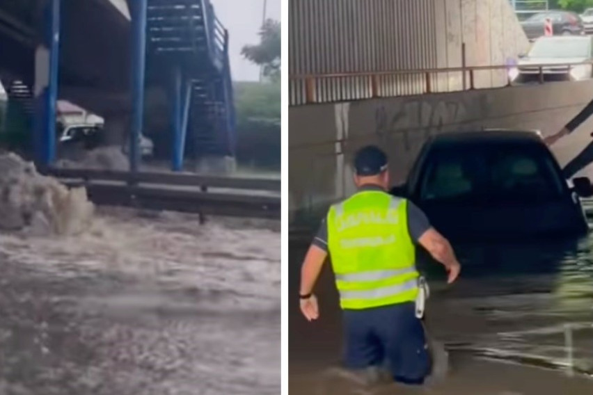 Според снимките објавени на социјалните мрежи, дел од автопатот бил под вода.