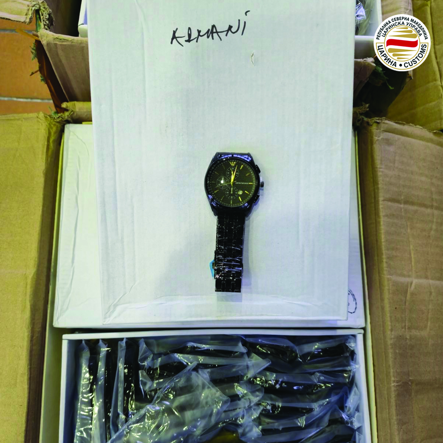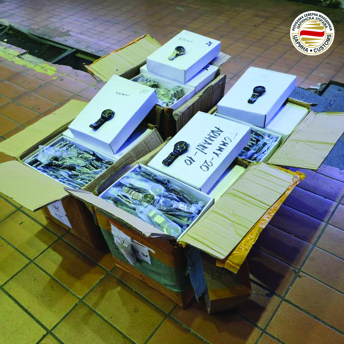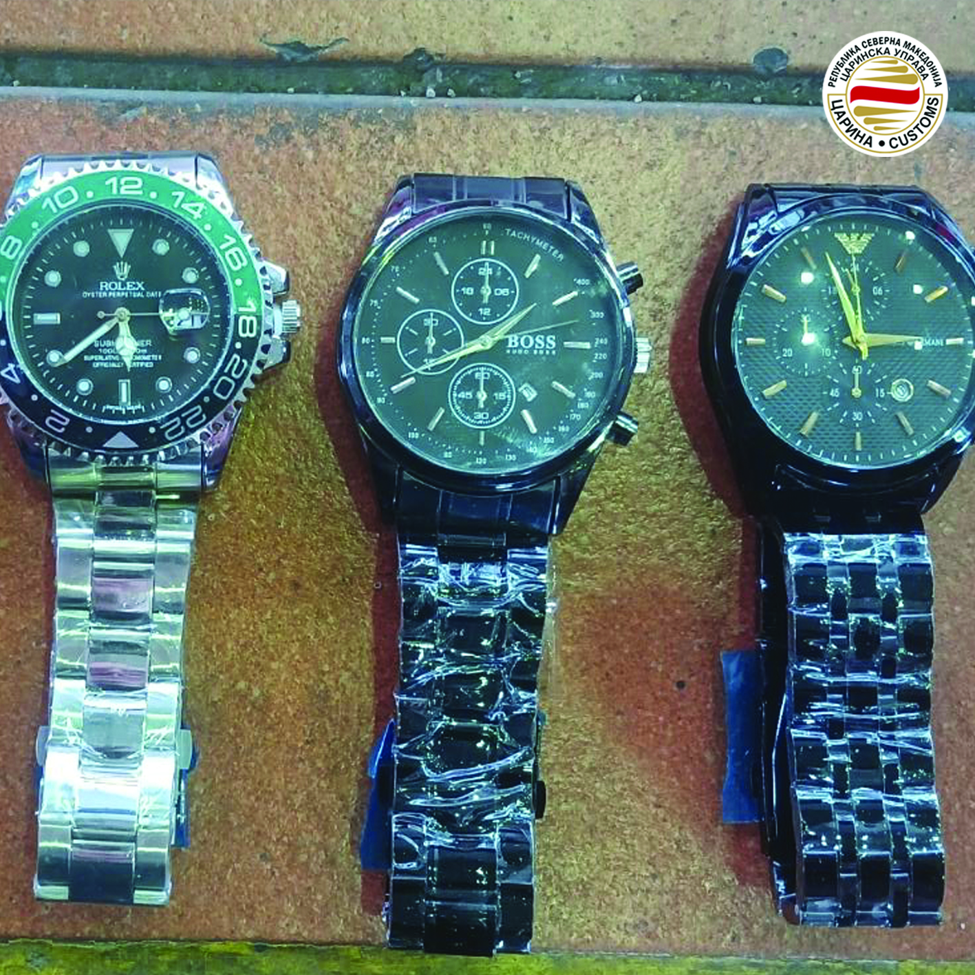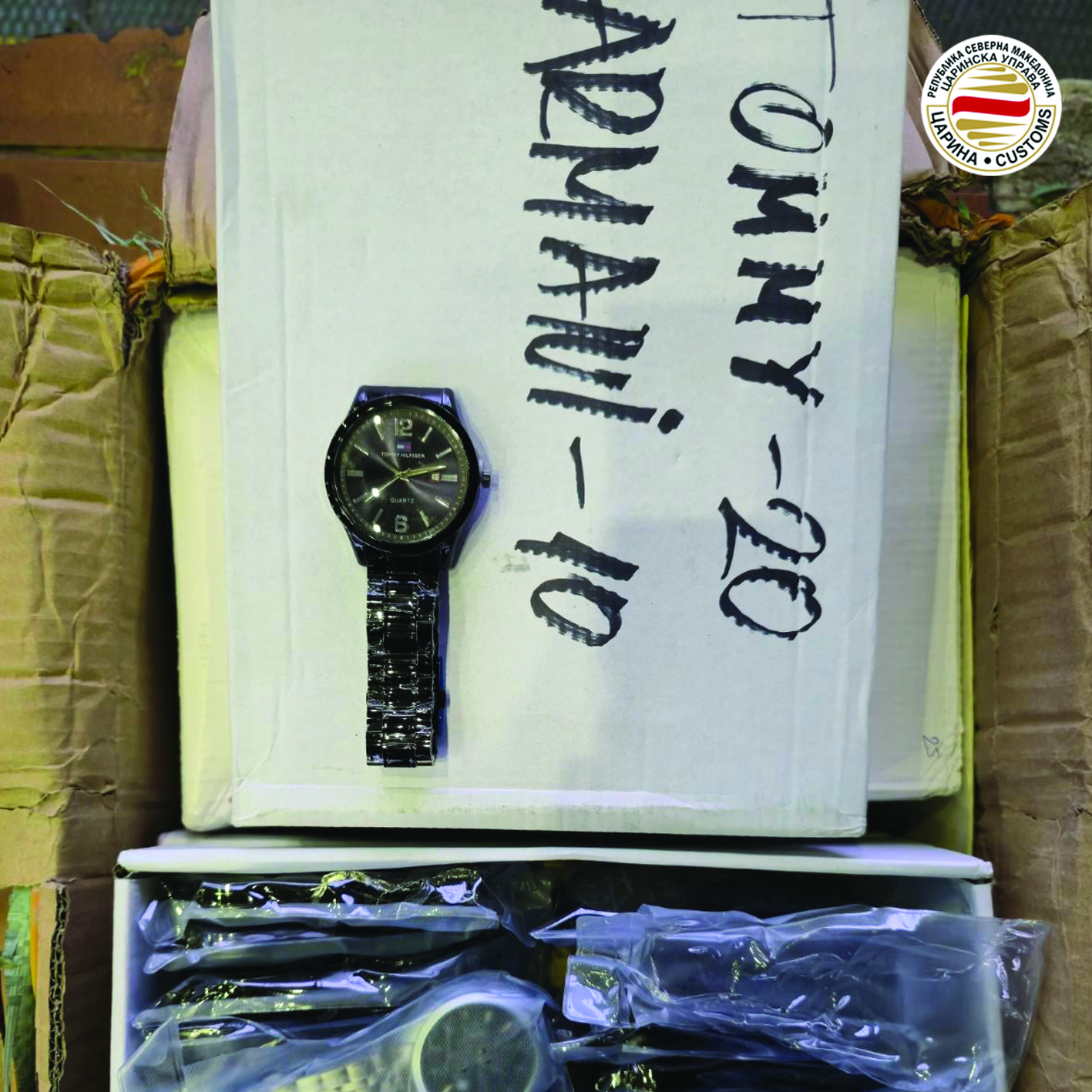 Дури 1.158 парчиња часовници со потпис на заштитени трговски марки „Ролекс“, „Бос“, „Армани“ и „Томи Хилфигер“ се запленети при контрола на стока пријавена за транзит на граничен премин Богородица.