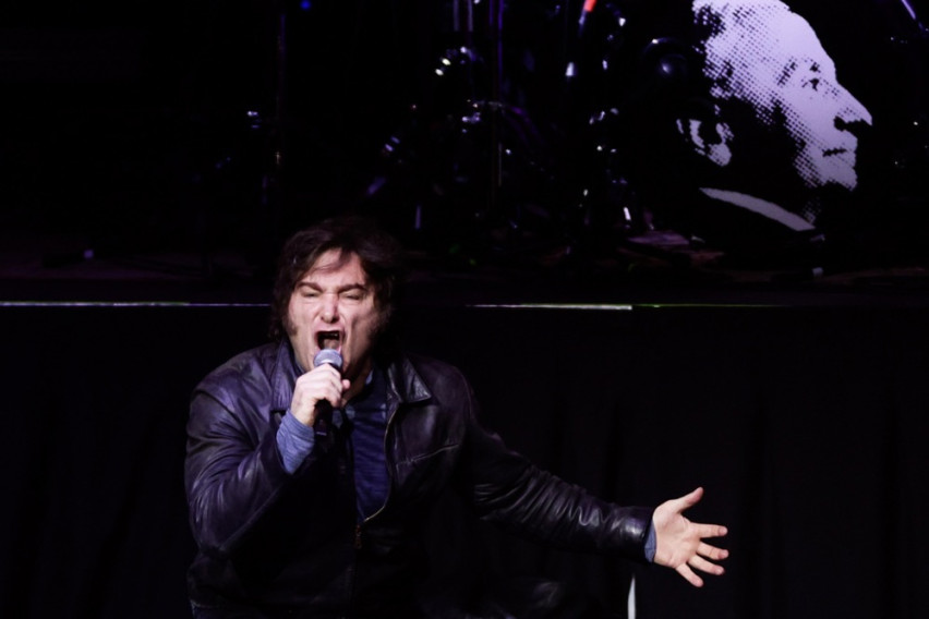„Дај ми оган, дај ми го огнот на твојата љубов“, пееше претседателот на Аргентина, Хавиер Милеи, облечен во црна кожна облека, со рапав глас пред 15.000 луѓе кои го бодреа во арената „Мовистар“ во Буенос Аирес.