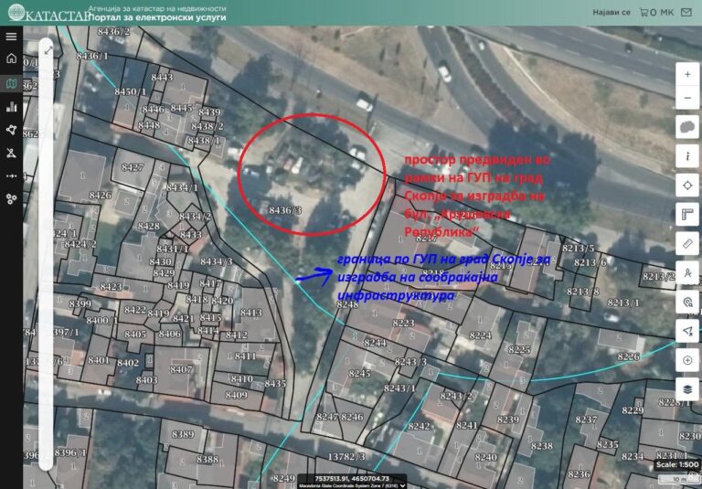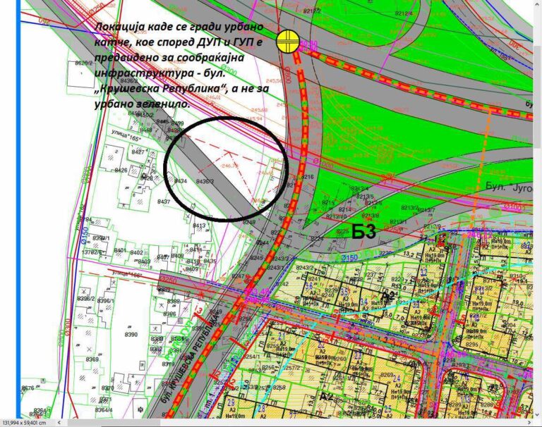 Локацијата која според Генералниот урбанистички план (ГУП) е локација предвидена за изградба на булевар „Крушевска Република“, а според Деталниот урбанистички план (ДУП), оваа зона е предвидена за сообраќајна инфраструктура, а не за урбана опрема и игралишта.