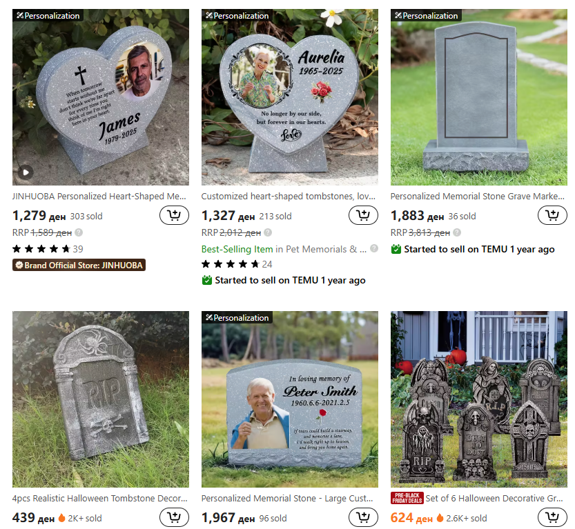 Во понудата на онлајн трговската платформа „Temu“ се појавија и плочи за надгробни споменици, што предизвика поделени реакции меѓу потрошувачите.