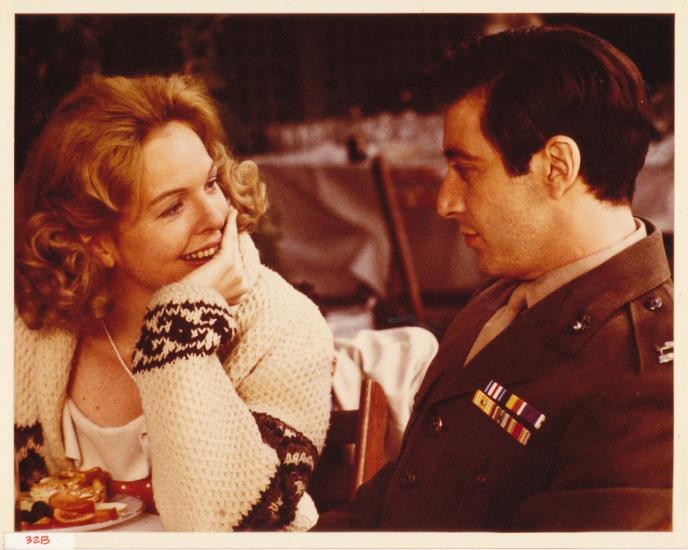 Нивната љубов започнала во 1974 година, за време на снимањето на култниот филм „Кум“, каде Китон ја толкуваше неговата партнерка Кеј Адамс. Љубовта од филмското платно брзо се пренела и во реалноста.