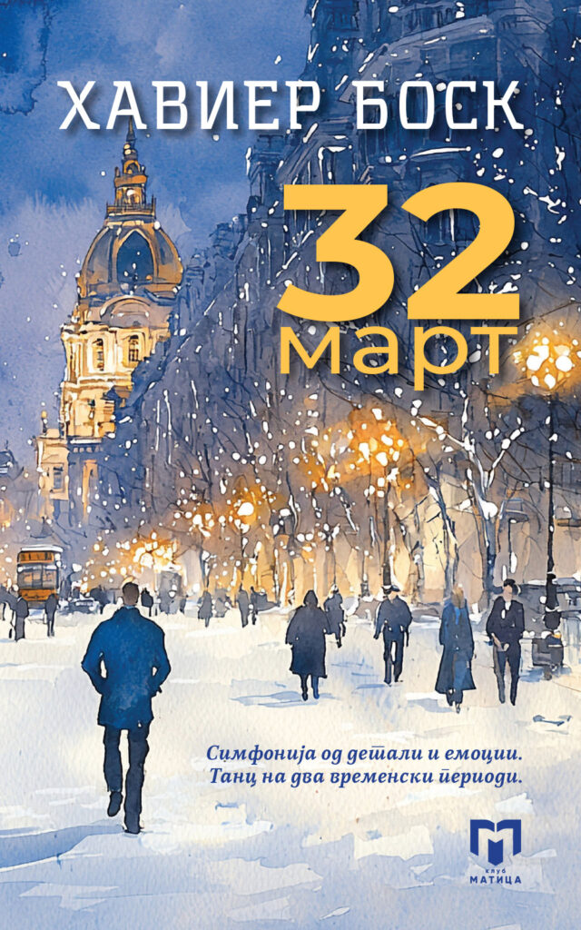 „32 март“ е роман што зборува за борбата меѓу животот и убавината, за пропагандата како оружје за заведување, за музиката како инструмент на спасение, и за љубовта како сила што може да го промени сè.