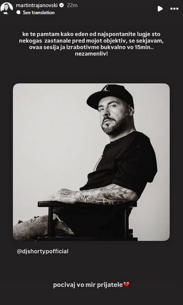 „Ќе те памтам како еден од најспонтаните луѓе што некогаш застанале пред мојот објектив, се сеќавам, оваа сесија ја изработивме буквално во 15 минути... Незаменлив“.