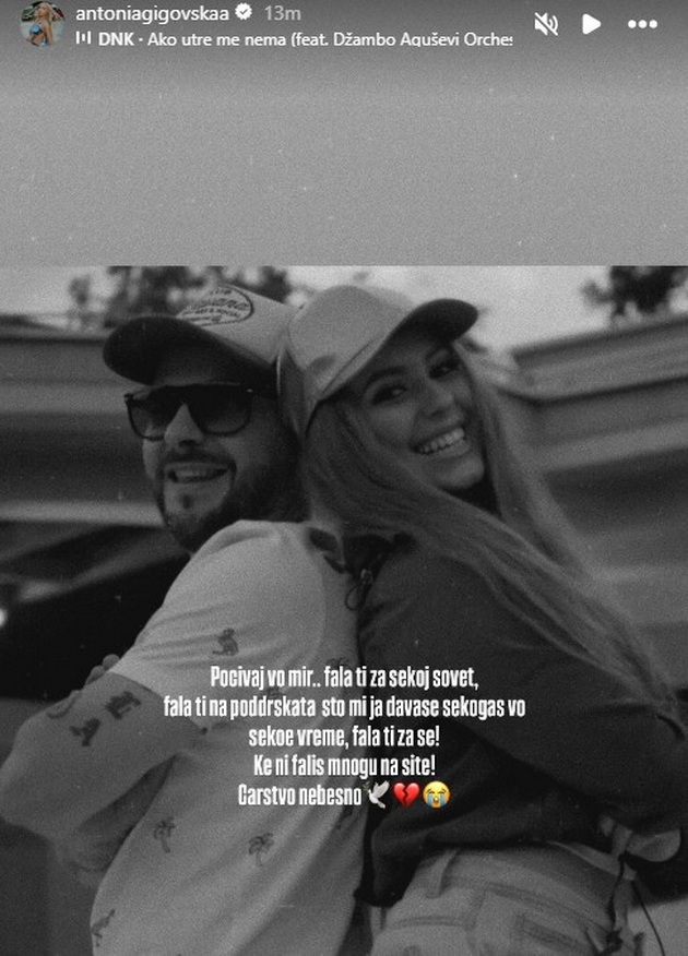 „Почивај во мир... Фала ти за секој совет, фала ти за поддршката што ми ја даваше секогаш во секое време, фала ти за се. Ќе ни фалиш многу на сите. Царство небесно!“.