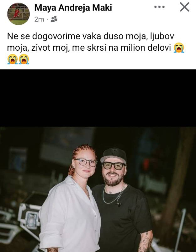 „Не се договоривме вака, душо моја, љубов моја, живот мој. Ме скрши на милион делови“, напиша Маја на својот фејсбук-профил.