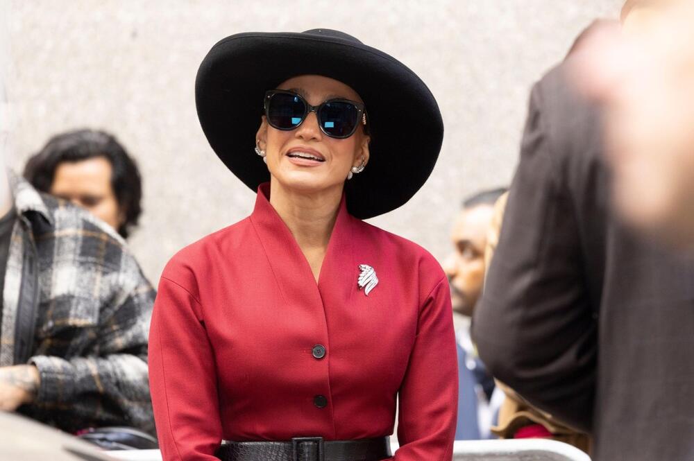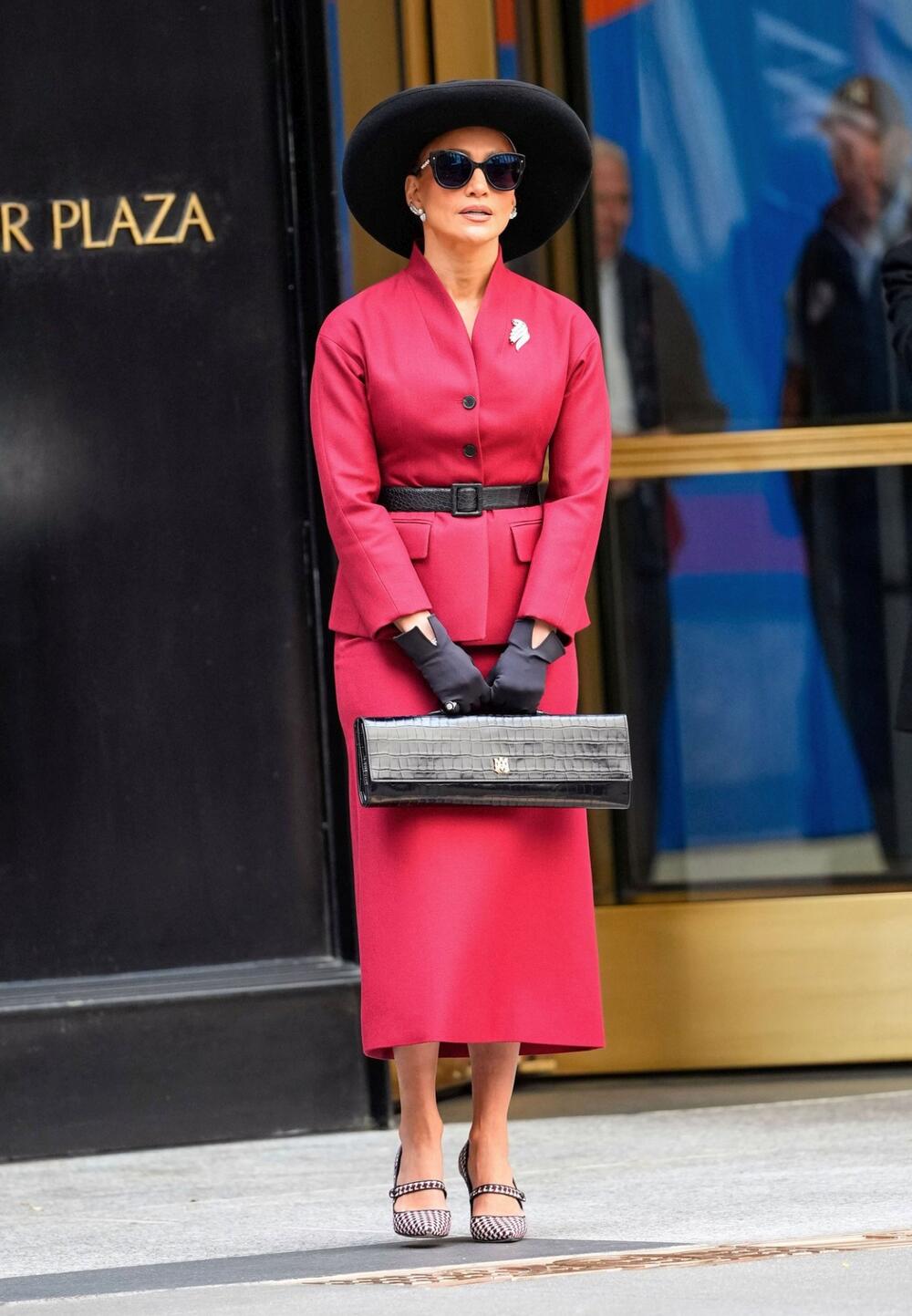 Лопез својот изглед го надополнила со ракавици, шешир и кожна чанта, бирајќи го секој детаљ со доза на софистицираност и мистерија.