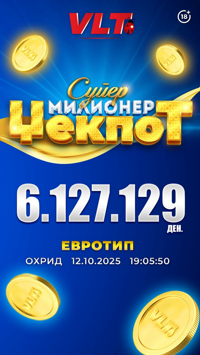 Охриѓанецот С.Б. е најновиот среќен добитник на СУПЕР МИЛИОНЕР ЏЕКПОТ вреден 6.127.129 денари! На 12.10.2025, токму на видеолотариските терминали во Клуб спорт 77 Евротип, неговата среќна игра „40 Burning Hot“ му ја донесе најпосакуваната добивка!