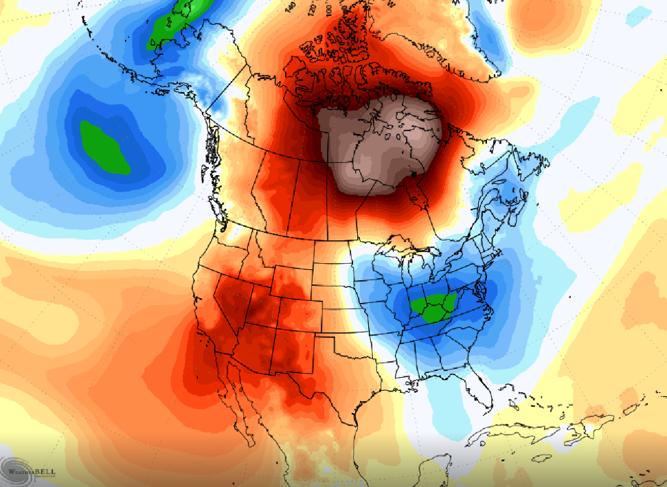 Температурните аномалии покажуваат студени услови во источниот дел на САД и деловите на Европа, додека пак западните делови од Канада ќе останат под влијание на потопол воздух поради составот на високиот притисок.