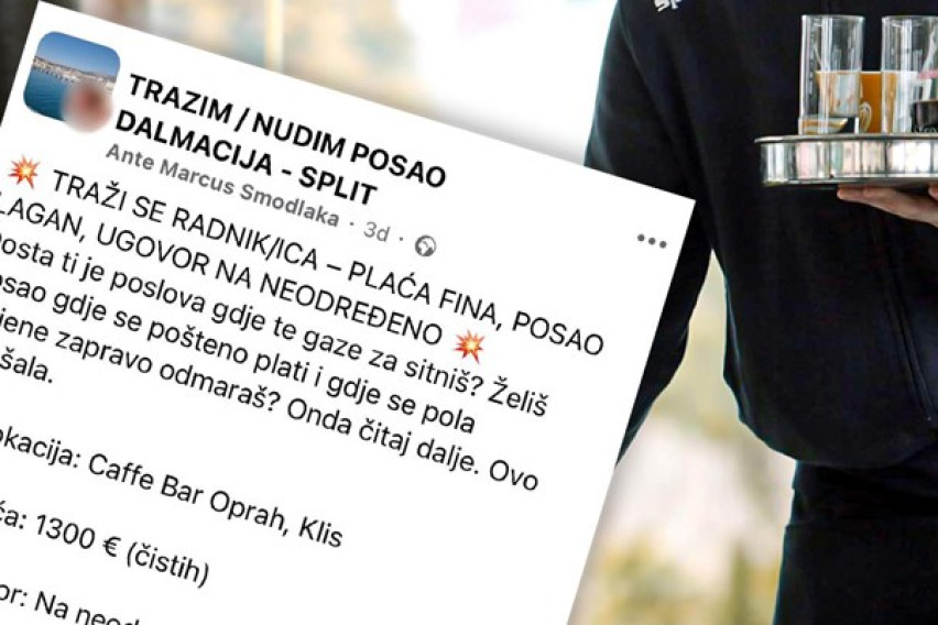 Оглас за работа во едно кафуле на Клис, Хрватска, се прошири на социјалните мрежи и предизвика бројни реакции.