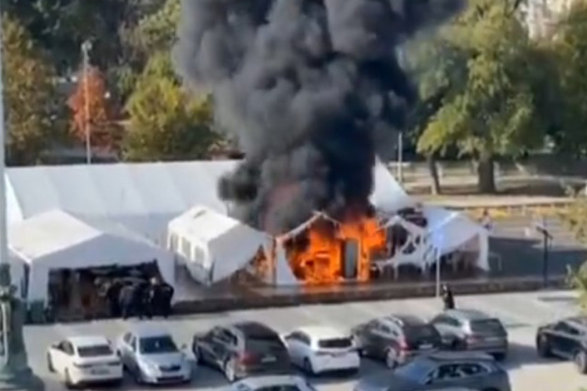 Според првичните информации, пожарот зафатил шатор поставен пред зградата на Српското народно собрание.
