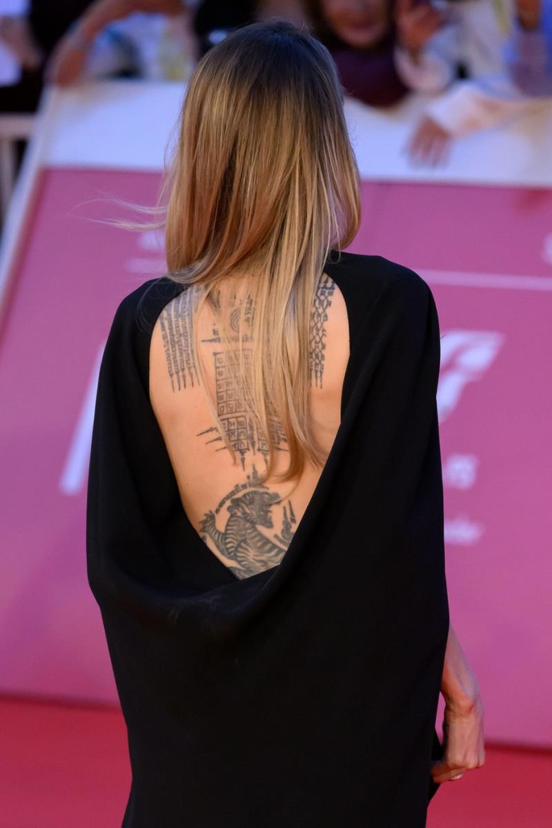 На грбот од фустанот се наоѓал прекрасен изрез којшто ги истакнал тетоважите на филмската ѕвезда.