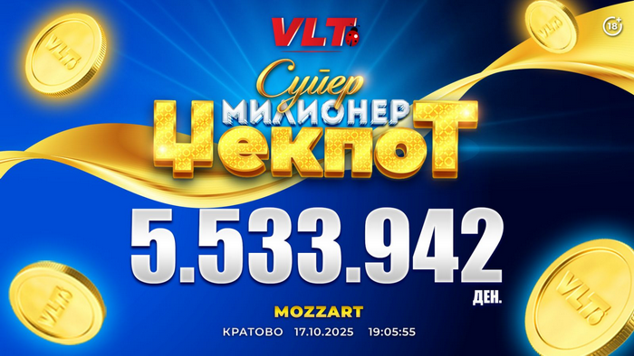 Г.П. од Куманово на 17.10.2025, на видеолотариските терминали во Делта бет Моцарт ја освои најпосакуваната ВЛТ добивка. „40 Лаки Кингс“ е среќната игра, која му овозможи да освои 5.533.942 денари.