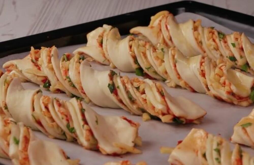 Секоја лента можете да ја свиткате или да ја оставите рамна, а потоа да ги премачкате со жолчка од јајце за да добијат убава златна боја откако ќе се испечат.
