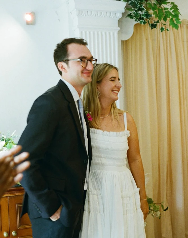 По излегувањето од зградата на општината, гостите ги посипувале младенците со конфети, а потоа сите се качиле во познатиот црвен автобус, двокатник, и заминаа во ресторан каде се одржала просвата. Оригинално, нема што. На социјалните мрежи му честитале и колегите, меѓу првите Софи Тарнер и Гвендалин Кристи.