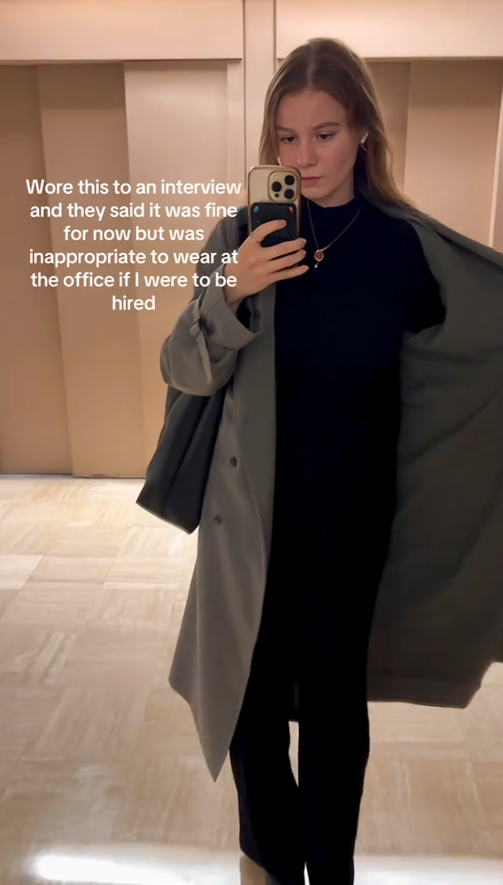 Своето искуство го споделила на социјалните мрежи. „Ова го носев на разговорот за работа, а тие рекоа дека засега е во ред, но дека би било несоодветно да го носам во канцеларија ако ме вработат“, напишала Лорен покрај видеото на кое ја прикажува својата облека.