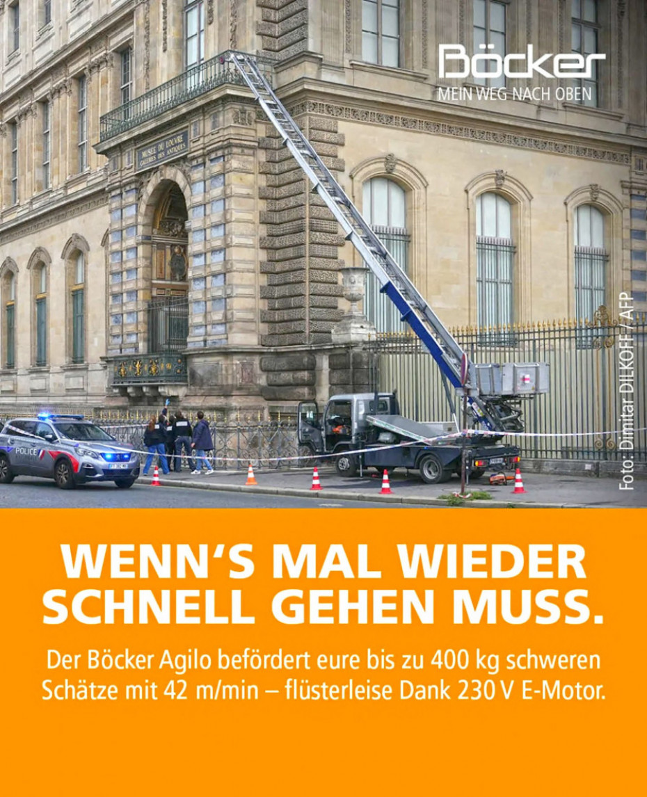 Германска компанија за производство на подвижни кранови претвори една скандалозна ситуација во мајсторски пример на публицитет, користејќи ја својата случајна улога во грабежот на „Лувр“ како вирален маркетинг потег.