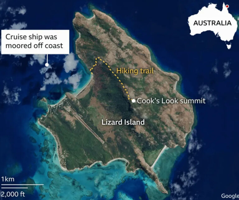 Сузан Рис, од Нов Јужен Велс, наводно била на првата етапа од 60-дневното крстарење околу Австралија кое тргнало од Кернс претходно оваа недела. Патниците, кои плаќаат десетици илјади долари за патувањето, биле однесени на ексклузивниот остров на еднодневен излет кое вклучувало планинарење и нуркање.