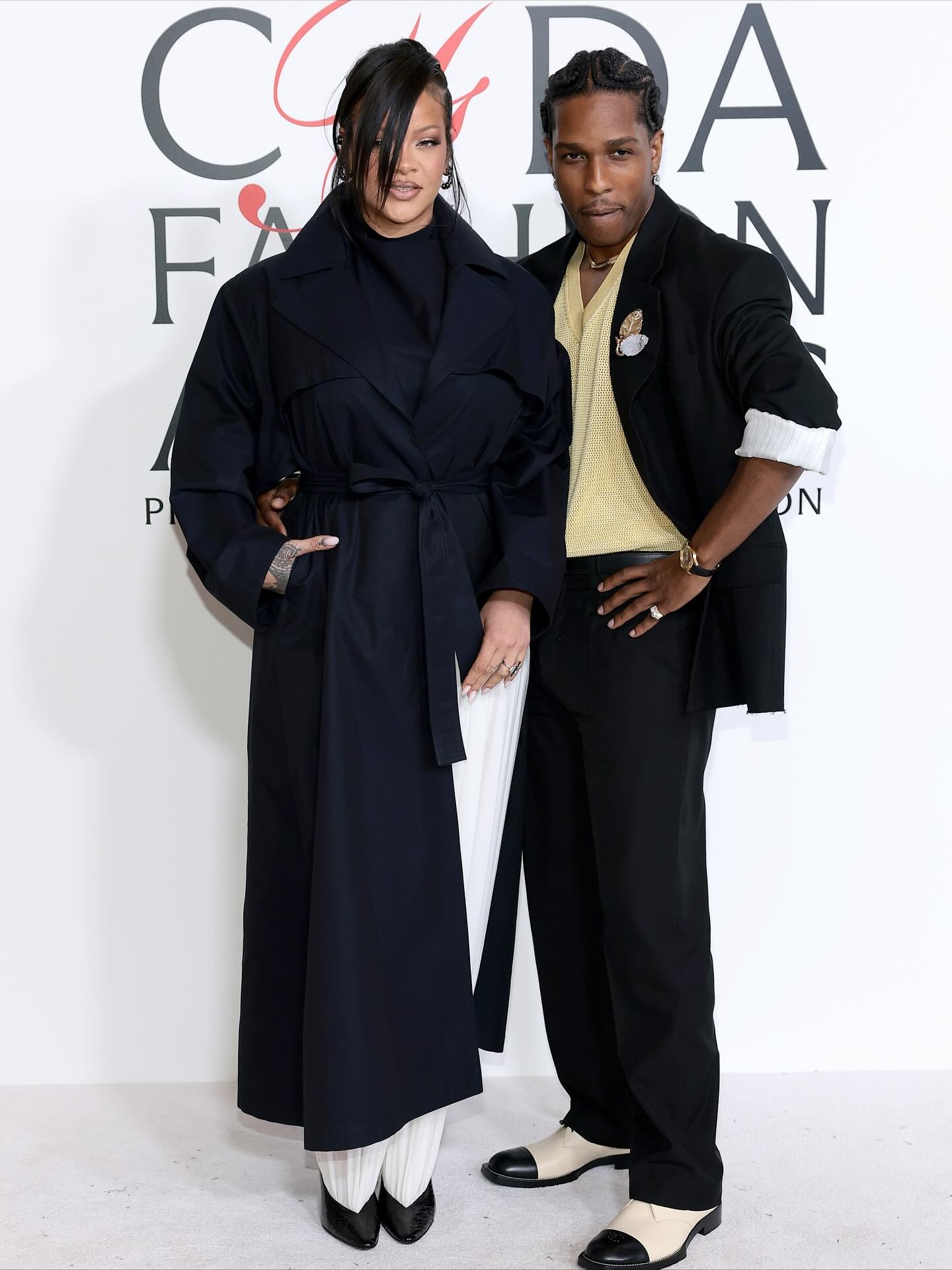 Нејзиниот партнер АСАП Роки пак, блесна во издание на „Chanel“. Ретро оделото беше вистински пример за модна елеганција, како и двобојните чевли со потпис на брендот. Накитот од „Briony Raymond“ му даде дополнителна доза на софистицираност, а многумина заклучија дека токму така изгледа современо стилизиран маж.