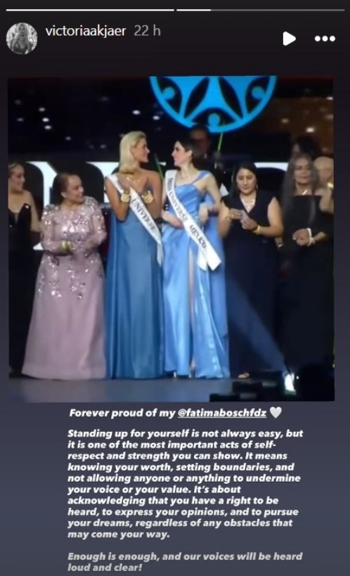 Актуелната „Miss Universe“, Викторија Кјер Теилвиг, на „Инстаграм“ напиша: „Засекогаш горда на мојата Фатима. Доста е — нашите гласови ќе се слушнат гласно и јасно!“.