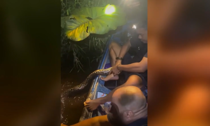 Екипата од чамецот, која првично се смеела, веднаш скокнала да помогне. Двајца мажи со мака успеале да го ослободат водичот — едниот ја држел главата на змијата, другиот опашката.