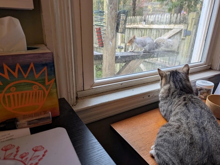 I wasn't ready for a new cat after we lost one in June '24 and another this past March. This tabby decided we were ready when he marched in and made himself at home.