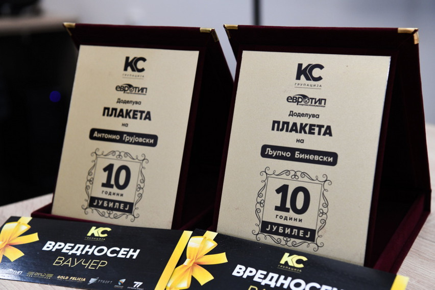 Во КС Групација веруваме дека вистинскиот успех се гради преку луѓето. Токму затоа со голема гордост го одбележуваме јубилејот на четворица наши колеги кои веќе деценија се дел од нашето заедничко патување, придонесувајќи со труд, искуство и посветеност во рамки на Евротип и Голд Слот Клуб.