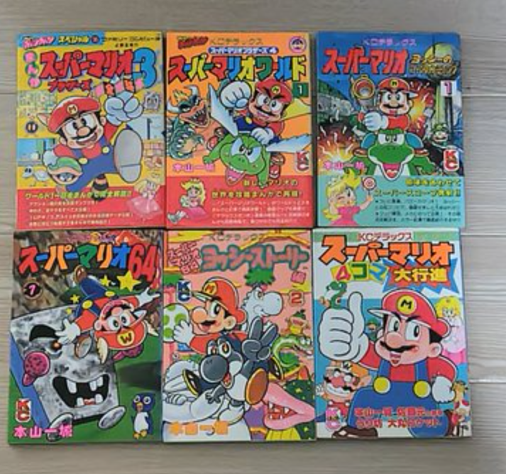 Изданијата на Мотојама ретко имаа единствен наслов – најчесто го носеа името на актуелната „Nintendo“ игра, како "Super Mario Bros. 3" или "Super Mario 64". Последните томови беа инспирирани од "N64"-играта "Yoshi’s Story" од 1997 година, по што „Kodansha“ ја изгуби лиценцата за "Super Mario".