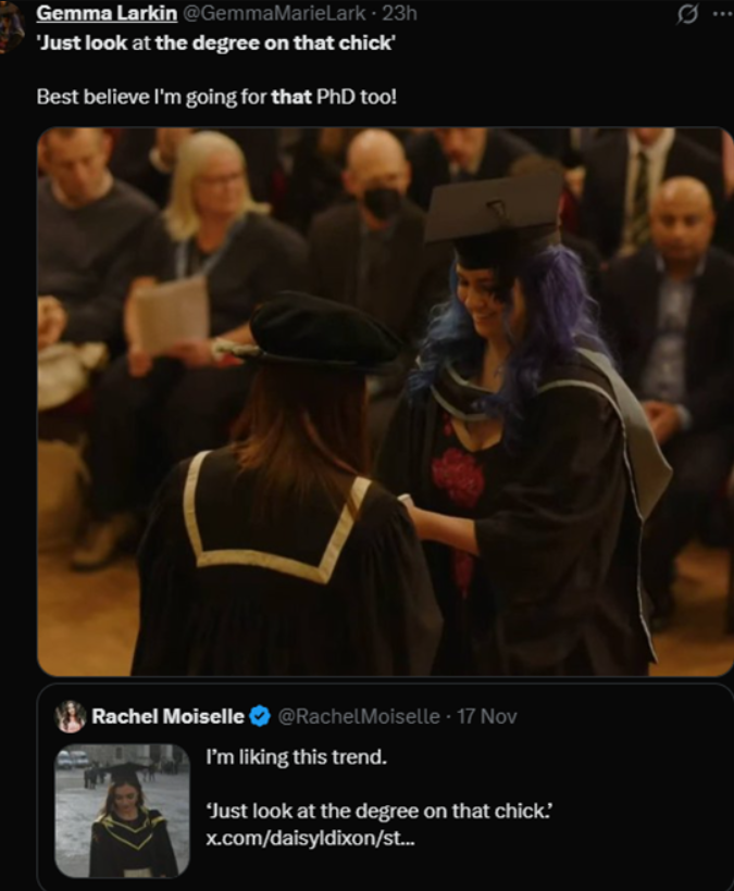 И веднаш по тоа, „X“ беше преплавен со фотографии на девојки со дипломи, проследени со реченици: „Па, само погледнете ја дипломата кај таа девојка!“