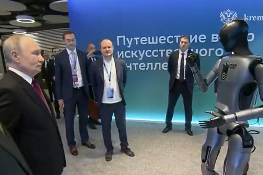 „Моето име е Грин. Јас сум првиот руски хуманоиден робот со вградена вештачка интелигенција. Тоа значи дека не сум само програма на екран, туку физичко тело на технологијата“, му рече роботот на Путин.