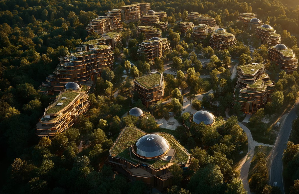 Куќите и становите би биле изградени според еколошки стандарди, користејќи модуларни дрвени елементи, а градот би имал многу простор за пешаци и области каде што децата можат слободно да трчаат.