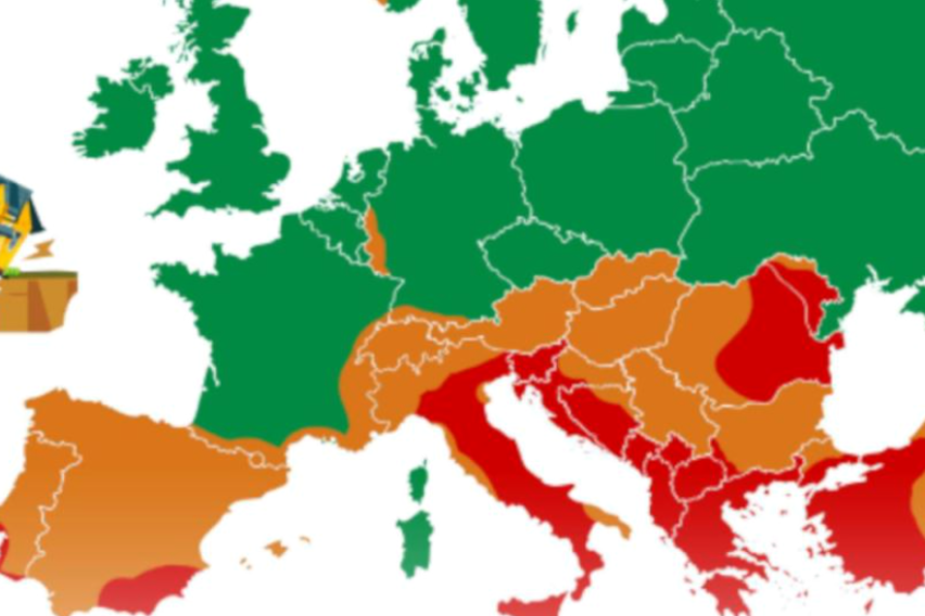 Србија, Шпанија, Португалија, Франција, Австрија и Унгарија се наоѓаат во портокалова зона, односно означени се како подрачја со среден ризик иако одредени делови преминуваат во црвено во кои речиси целосно обележана е Италија.