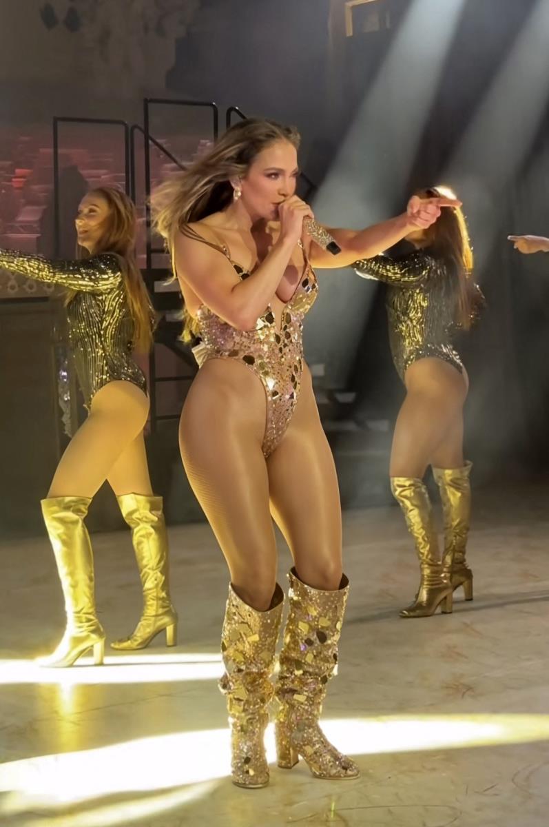 Во еден момент, облините на 56-годишната пејачка речиси испаднале од трикото во кожа боја за време на енергичниот танц.