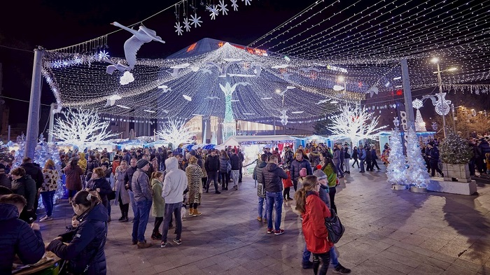Во повеќе од 90 рачно насликани куќички се продаваат разни локални ракотворби, подароци и празнични деликатеси како медењаци, мититеи – традиционални колбаси на скара, варено вино и туица, бистра сливова ракија. Главните атракции, како што се лизгалиштето, панорамското тркало и највисоките санки на Дедо Мраз во Источна Европа, се распоредени по историските градски плоштади и околните улици.