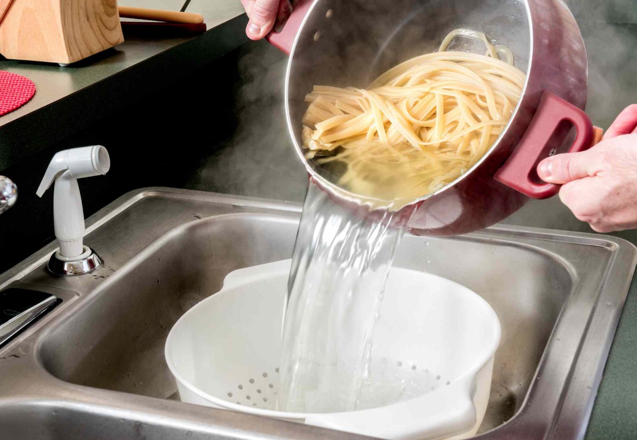 Ако забележите дека мијалникот се затнува, истурете ја врелата вода од тестенини во одводот.