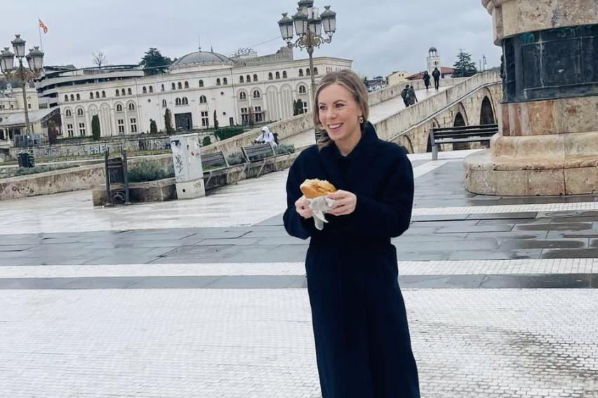 „Почнување на денот во Скопје со локален специјалитет! Нашата министерка за ЕУ, Јесика Розенкранц, почна напорен ден со енергичен појадок пред нејзината прва средба со македонскиот министер за ЕУ, Муртезани, и МЕА. Солено лепче во лепче – симит-погача, типично скопско печиво и каде е подобро да се ужива во него отколку во срцето на главниот плоштад во градот, со поглед на еден од најзначајните погледи во градот: Камениот мост, тврдината Кале, Старата чаршија, црквата „Св. Димитрија“, Даут-пашиниот амам, Мустафа-пашината џамија. Сè во еден кадар – поглед што совршено ја раскажува приказната за богатото мултикултурно наследство на Скопско и живописното општество на Северна Македонија. 🇸🇪 + 🇲🇰 = заедно посилни“, се вели во објавата на шведската амбасада на „Фејсбук“.