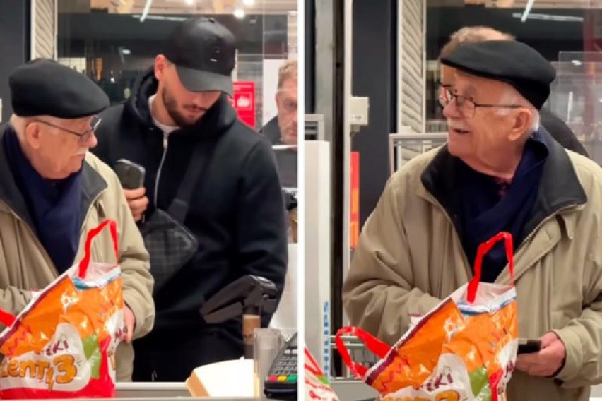 Креаторот на содржини Бранимир Рамљак (@branefc) на своите профили на социјалните мрежи објави снимка на која им плаќа сметка на пензионери на каса во продавница во Загреб.