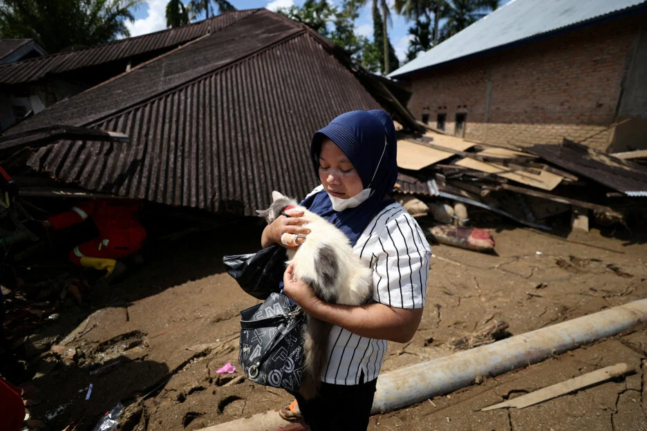 [ФОТО] Мачка спасена од урнатините по поплавите во Индонезија: Поминала 7 дена без храна и вода