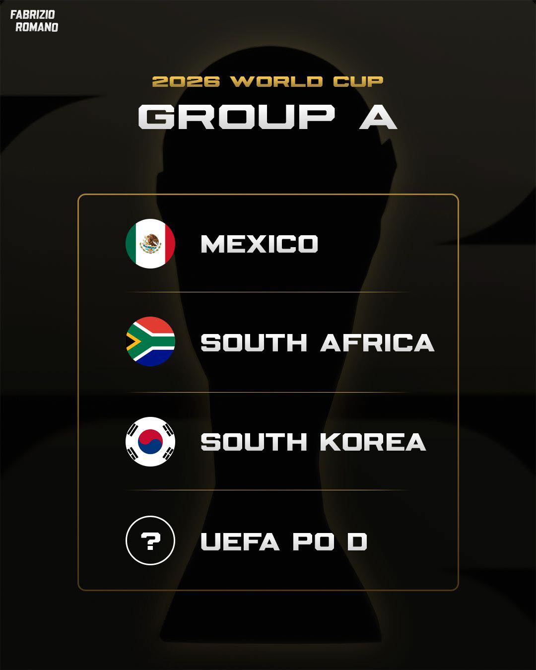 • Домаќините на турнирот — САД, Канада и Мексико — ги добија позициите D1, B1 и A1.