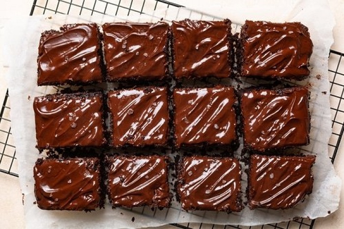 За глазурата, нежно загрејте го чоколадото и маслото додека не се соединат во мазна маса, а потоа рамномерно прелијте го колачот.
