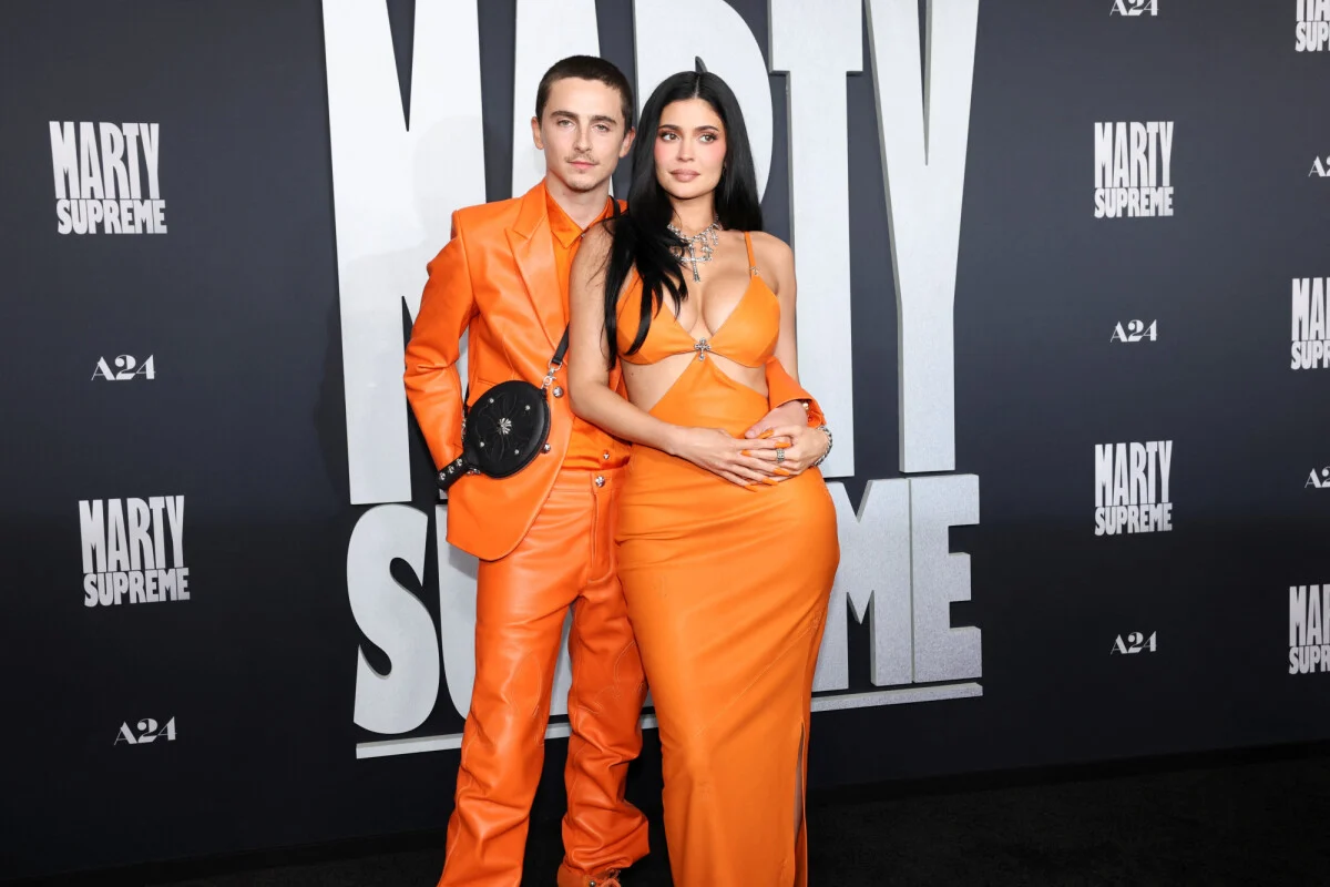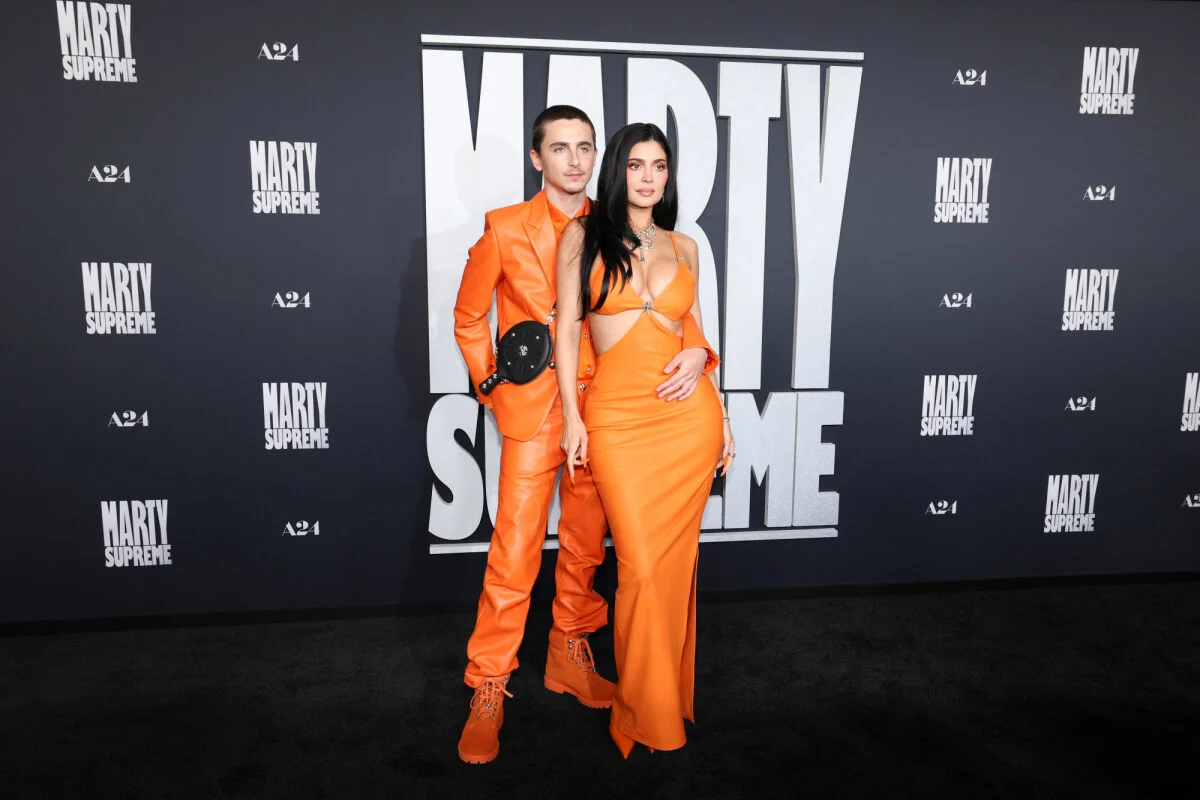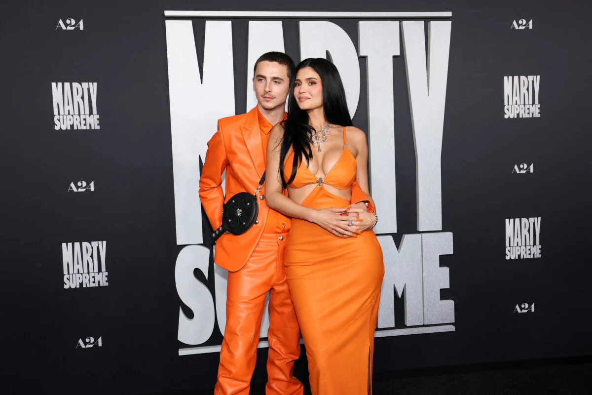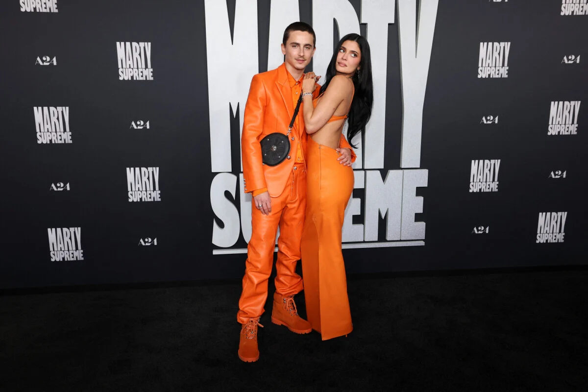 Кајли Џенер и Тимоти Шаламе беа во центарот на вниманието на премиерата на „Marty Supreme“ во Лос Анџелес благодарение на нивната усогласена облека во интензивна портокалова боја.