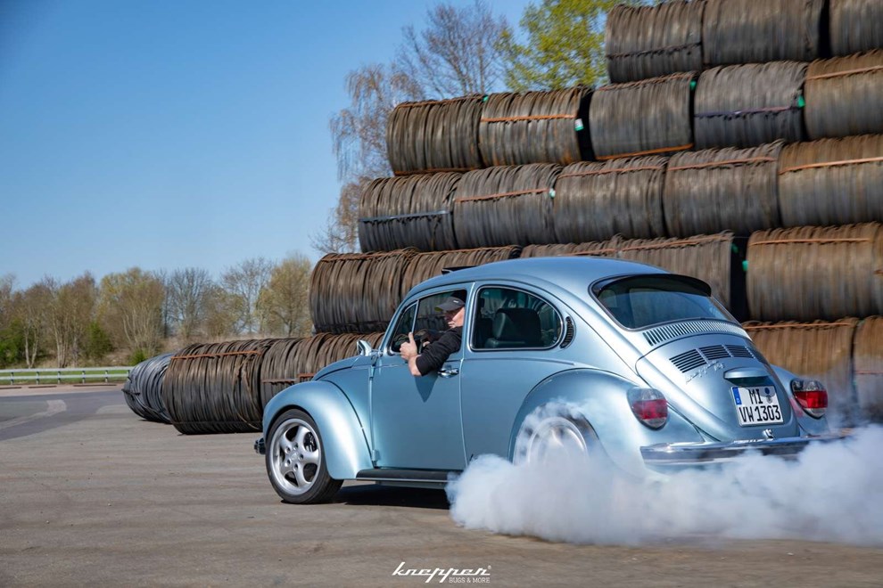 На прв поглед сината "VW Буба" 1303 изгледа како сосема обичен олдтајмер. Но доволни се само неколку секунди за да се открие нејзината вистинска природа. Без никаков звук од моторот, задните тркала почнуваат да го "ораат" асфалтот, чад од гумите го исполнува воздухот, а ситни парчиња стопена гума се разлетуваат по подлогата.