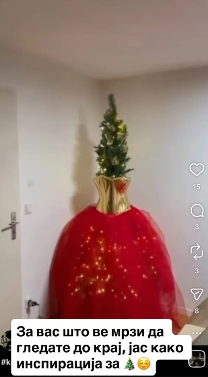 Тој бил инспириран од евровизискиот изглед на пејачката, па новогодишната елка ја „облекол“ во златно-црвен фустан каков што Гочева носеше на престижното музичко натпреварување.