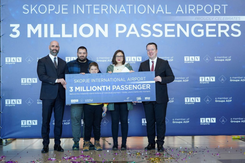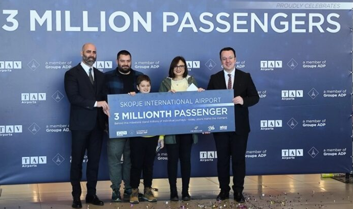 TАВ Македонија, подружница на ТАВ Аеродроми и членка на АДП Групацијата, денес го прослави 3 милионитиот патник во една година на Меѓународниот Аеродром Скопје.