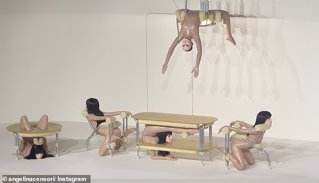 Изложбата била исполнета со необичен „човечки мебел“ што Бјанка сама го дизајнирала, вклучувајќи маски со нејзиното лице. На социјалните мрежи, Анџелина сестрата на Бјанка, ги покажала деталите на бизарното столче направено од кукла што наликува на Бјанка.