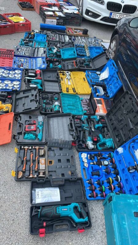 [ФОТО] Двајца уапсени, запленети 272 парчиња разновидна брендирана стока, 174 парчиња разновиден рачен алат без документација